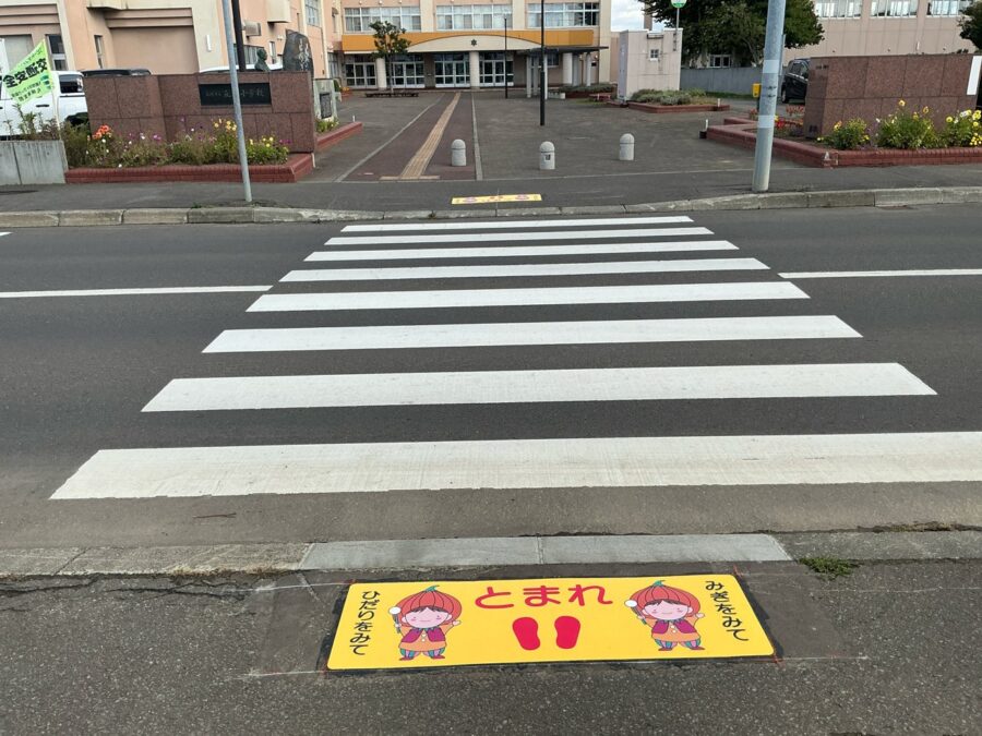 この取り組みは、ストップマークの設置により児童の交通安全意識向上と学校での交通安全教育に活用したいという同校のご意見を踏まえ実施したものです。絵柄には、札幌市東区のマスコットキャラクター「タッピー」を使用しており、「児童にも親しみやすく、楽しく交通安全を学べる」と多くの感謝をいただき、同校校長より感謝状をいただきました。