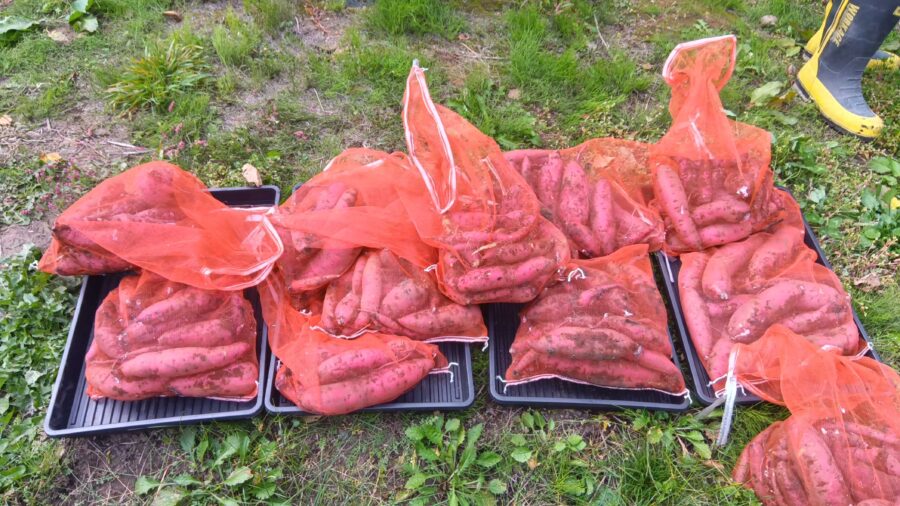 開設して初めての収穫となりましたが、たくさんのサツマイモとカボチャを収穫することができました。