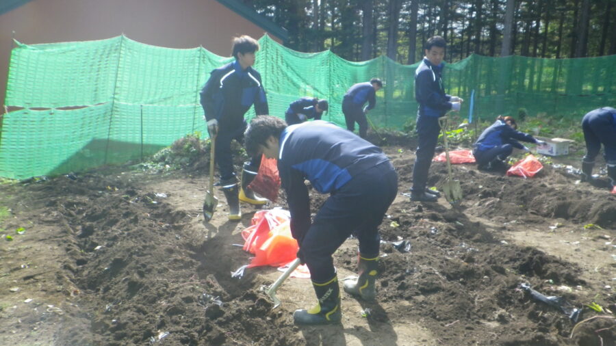 留寿都農林事業所内にある「新道楽園」にて、6月に社員が植えたサツマイモとカボチャが収穫時期を迎え、若手社員を中心に総勢11名が参加し、収穫祭を開催しました。